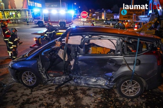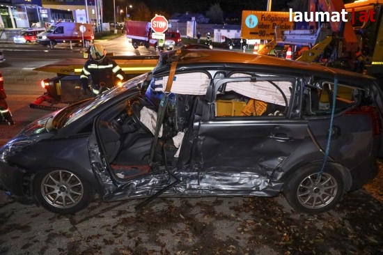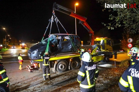 Zwei Autos kollidierten aus bisher noch unbekannten Gründen auf der Kreuzung der Salzkammergutstraße mit dem Fliegerschulweg beziehungsweise der Miller von Aichholz-Straße in Gmunden. Eine Person musste von der Feuerwehr mittels hydraulischem Rettungsgerät aus dem Fahrzeug befreit werden. Dazu musste das Dach des Unfallwracks aufgeschnitten werden, um den Patienten möglichst schonend aus dem Unfallfahrzeug befreien zu können. Die Verletzte wurden nach der Erstversorgung am Unfallort ins Klinikum eingeliefert. Die Feuerwehr führte anschließend die Aufräumarbeiten am Unfallort durch. Abschleppdienste entfernten anschließend die Unfallfahrzeuge