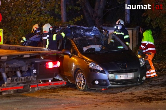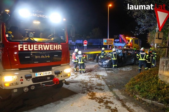 Autolenker nach schwerem Crash auf Salzkammergutstraße in Gmunden durch Feuerwehr aus Auto befreit