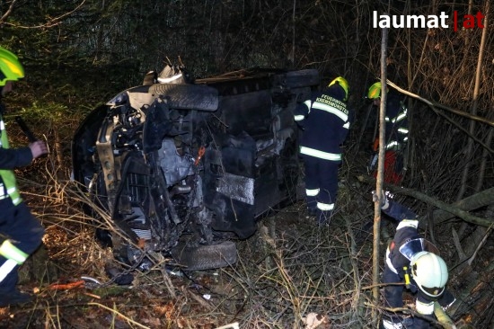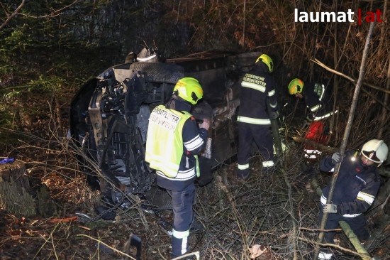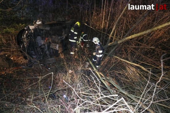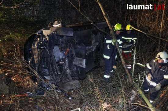Der PKW-Lenker verlor aus bislang unbekannten Gründen auf der Sipbachzeller Straße auf Höhe der Schacherteiche, im Gemeindegebiet von Kremsmünster, die Kontrolle über sein Fahrzeug. Das Auto kam von der Straße ab und überschlug sich in dichtes Waldstück neben der Fahrbahn. Das Auto war dann zwischen den Stämmen der Laubbäume eingeklemmt, der Lenker im Auto eingeschlossen. Die Feuerwehr konnte den Lenker nach dem Entfernen der Windschutzscheibe aus dem Fahrzeug befreien. Der Lenker erlitt ersten Angaben zufolge leichte Verletzungen. Die Feuerwehr führte anschließend die Bergung des Unfallfahrzeuges durch.