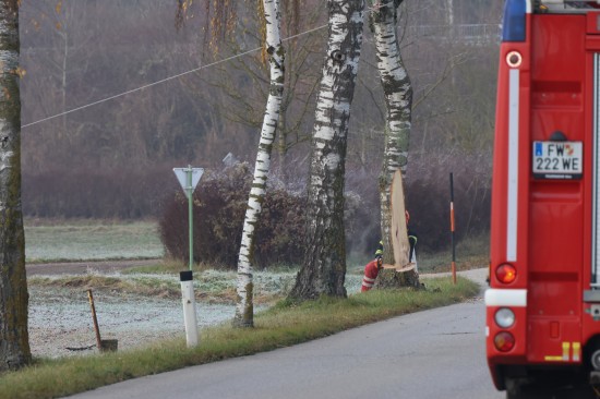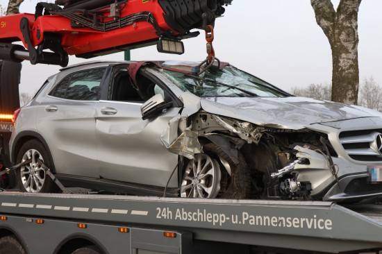 Der Unfall ereignete sich Mittwochnachmittag auf der Grieskirchner Straße im Welser Stadtteil Puchberg. Eine ältere Frau war offenbar mit einem Fahrzeug in Fahrtrichtung stadteinwärts unterwegs, als sie aus noch unbekannten Gründen die Kontrolle über das Fahrzeug verlor und gegen einen Baum krachte. Die Frau wurde dabei mittelschwer verletzt und nach der Erstversorgung ins Klinikum Wels gebracht. Das Unfallfahrzeug wurde vom Abschleppdienst geborgen. Die Feuerwehr musste den Baum - welcher durch den Anprall im Stammbereich gespalten wurde - umschneiden.