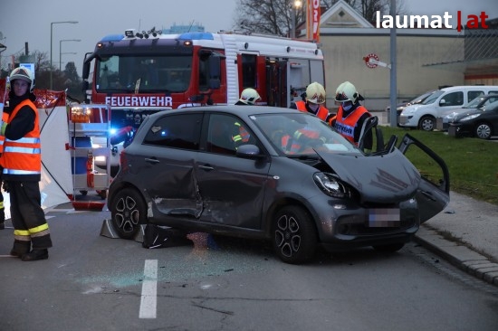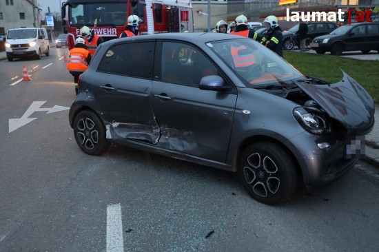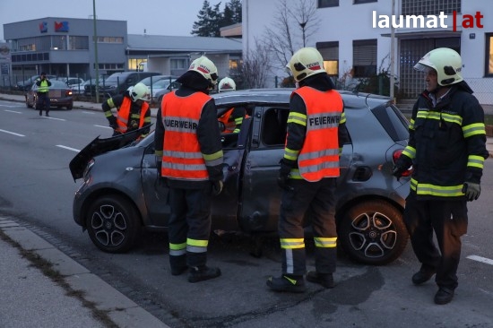Der Unfall ereignete sich auf der B1 Wiener Straße beziehungsweise Salzburger Straße auf Höhe der Kreuzung mit der Narzissenstraße im Welser Stadtteil Lichtenegg. Aus bisher unbekannter Ursache kollidierten zwei PKW. Eines der Unfallfahrzeuge hat sich nach der Kollision überschlagen. Ersthelfer haben den PKW wieder auf die Räder gestellt. Die Feuerwehr musste die eingeklemmte Lenkerin mittels hydraulischem Rettungsgerät befreien.