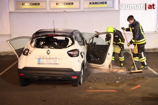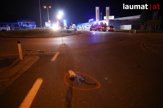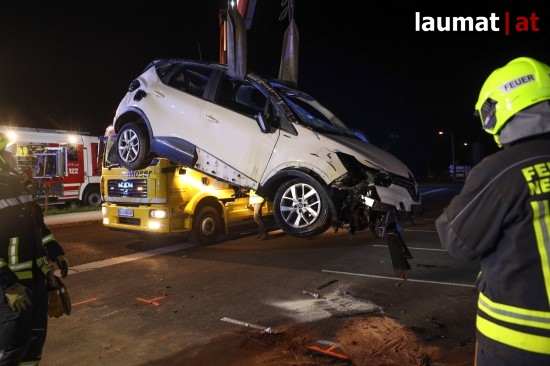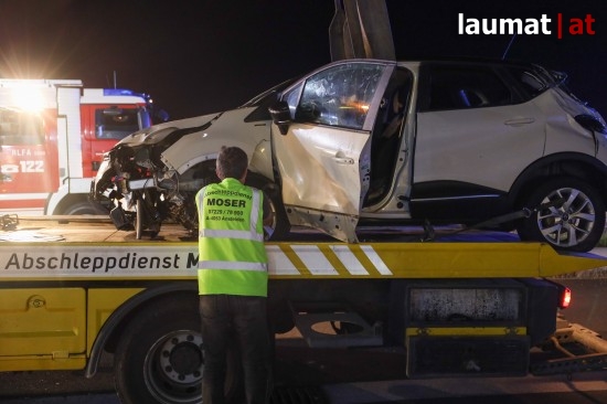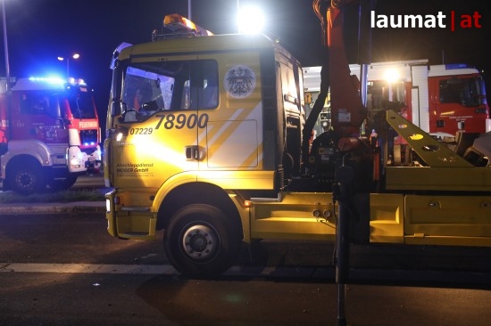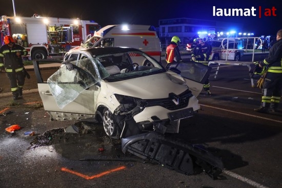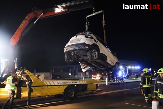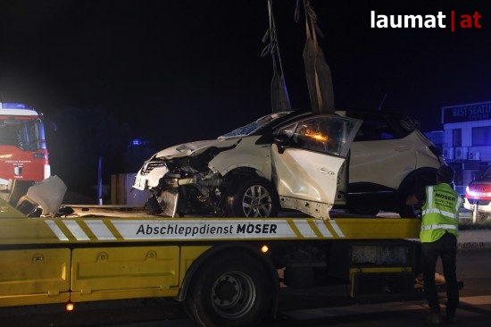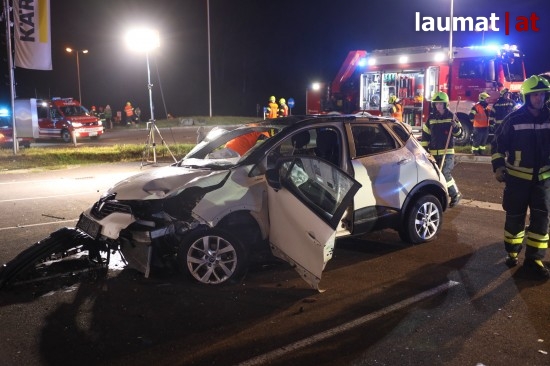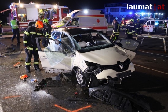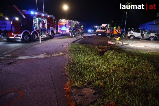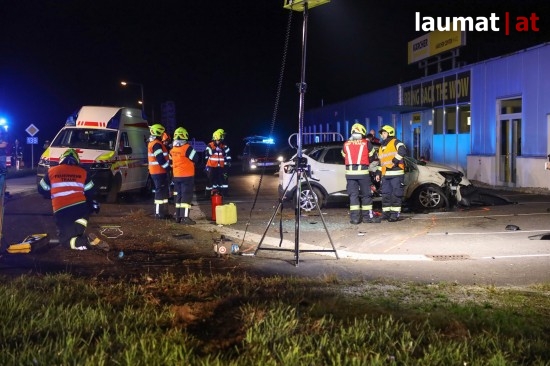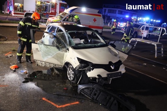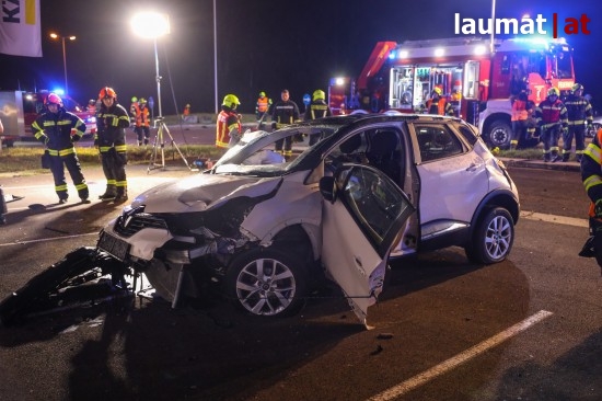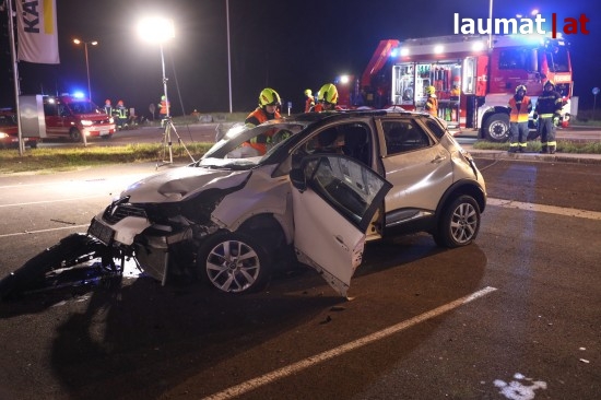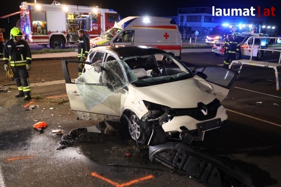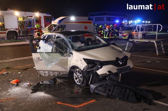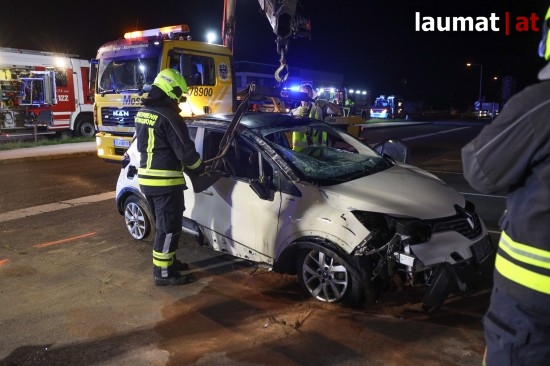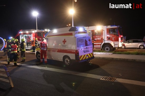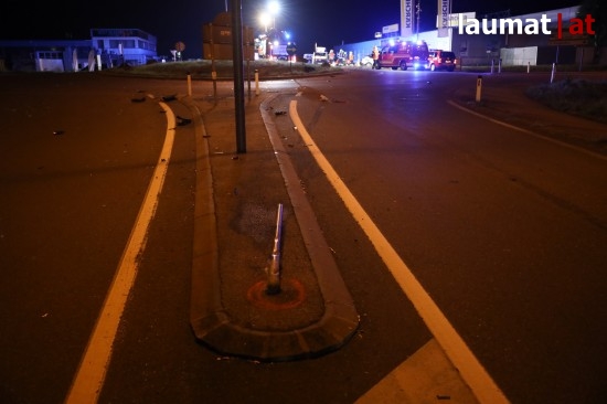 Ansfelden. Ein schwerer Verkehrsunfall hat sich in der Nacht auf Mittwoch in einem Kreisverkehr auf der B139 Kremstalstraße in Ansfelden (Bezirk Linz-Land) ereignet. Eine Autolenkerin war im Fahrzeug eingeschlossen.