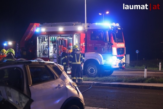 Ein schwerer Verkehrsunfall hat sich in der Nacht auf Mittwoch in einem Kreisverkehr in Ansfelden (Bezirk Linz-Land) ereignet. Eine Autolenkerin war im Fahrzeug eingeschlossen.