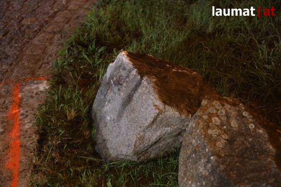 PKW versetzte bei Fahrt durch Kreisverkehr großen Stein