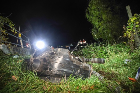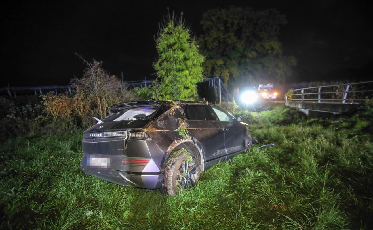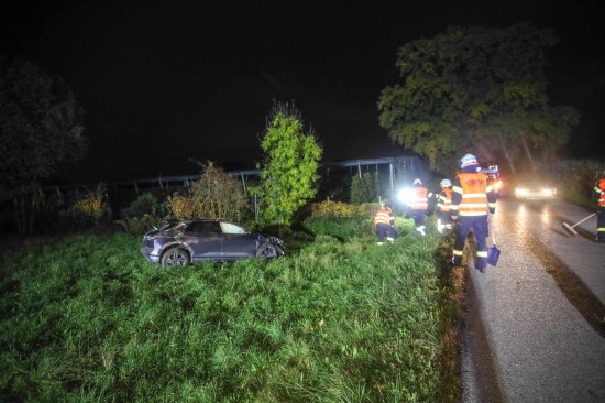 In Buchkirchen (Bezirk Wels-Land) ist Mittwochabend ein Elektroauto gegen ein Brückengeländer gekracht und hat sich dann überschlagen.