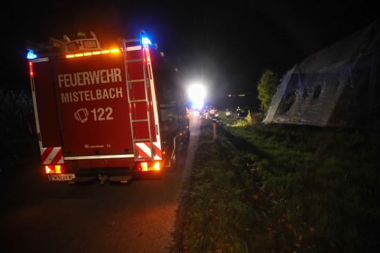 Der Unfall ereignete sich Mittwochabend auf der L1229 Haberfeldenstraße, In der Haberfelden, im Gemeindegebiet von Buchkirchen. Ein Auto kam dort im Bereich der Brücke über den Prieschinger Bach von der Fahrbahn ab, touchierte Randstein und Brückengeländer und überschlug sich in weiterer Folge. Der Lenker wurde ersten Angaben nach verletzt. Die Feuerwehr wurde zu den Aufräumarbeiten alarmiert und führte diese durch. Der PKW wurde von einem verständigten Abschleppdienst abgeholt.