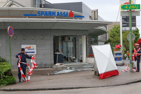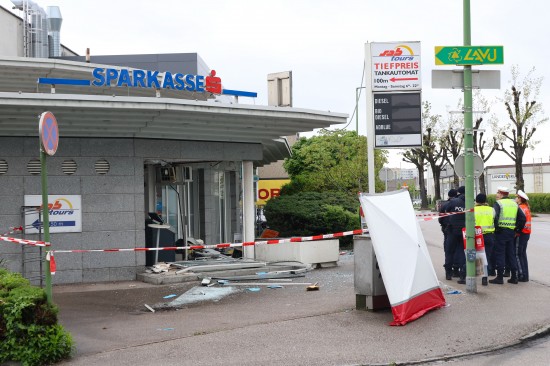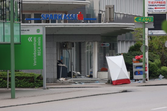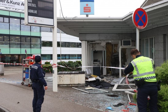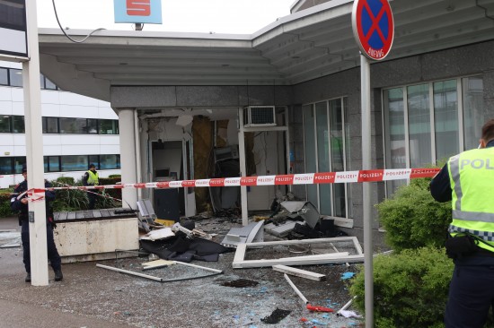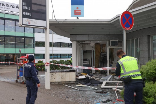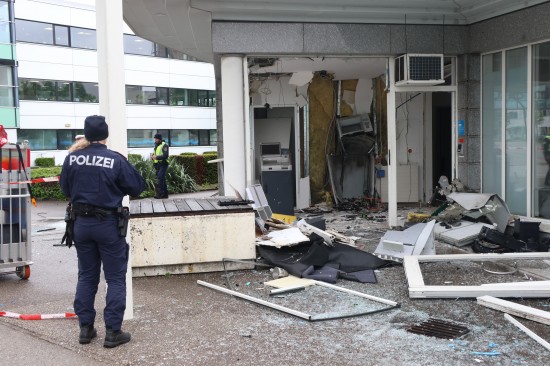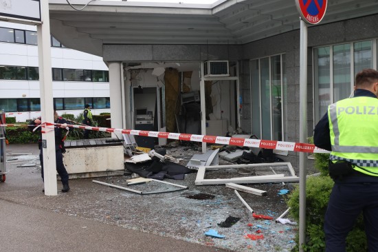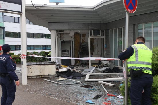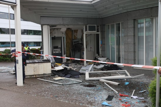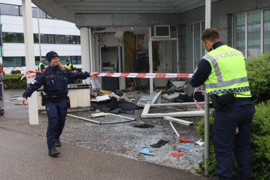 In den Morgenstunden haben bislang unbekannte Täter offenbar mit einer heftigen Sprengung einen Bankomat in einer Servicestelle einer Bank im Welser Industriegebiet gesprengt. Die Bankfiliale wurde dabei schwerst beschädigt. Anfangs konnte eine Gefährdung für den umliegenden Bereich nicht ausgeschlossen werden. Ein straßenseitiger Trakt eines angrenzenden Firmengebäudes wurde geräumt beziehungsweise gesperrt. Entgegen der Angaben der Polizei ereignete sich der Vorfall im Stadtteil Pernau und nicht in der Welser Innenstadt.