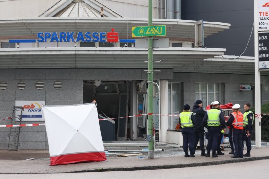 Bankomatsprengung: Großeinsatz der Polizei nach heftigter Detonation bei Bankfiliale in Wels-Pernau