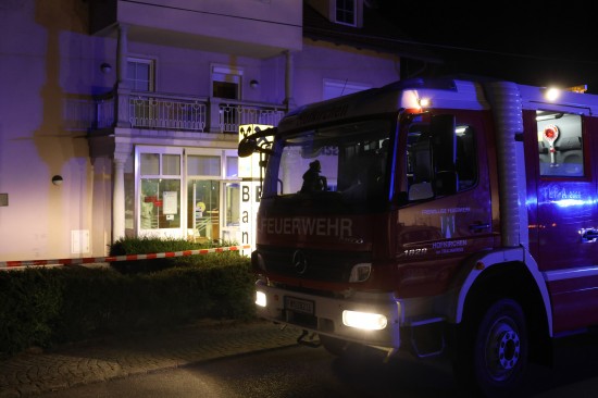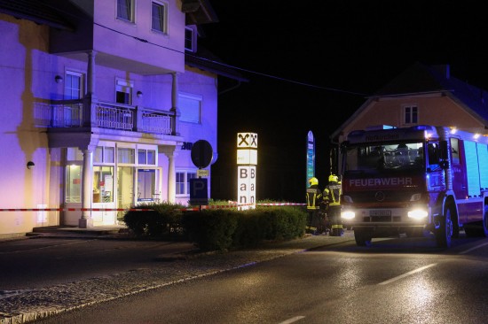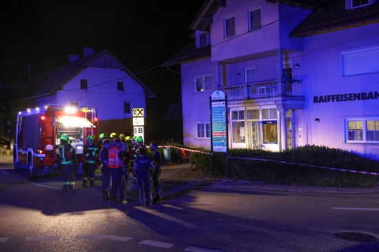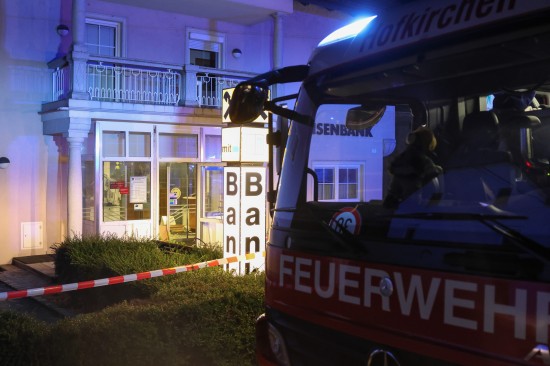 Bankomatsprengung: Feuerwehr- und Polizeieinsatz bei Bankfiliale in Hofkirchen im Traunkreis