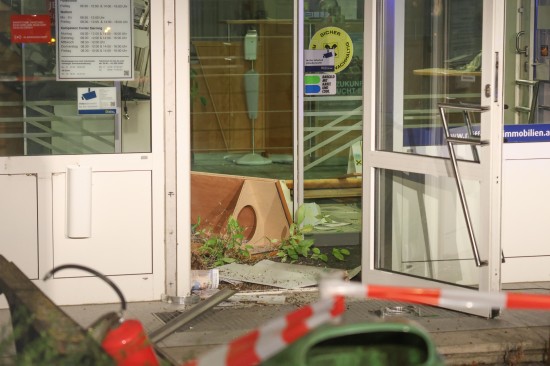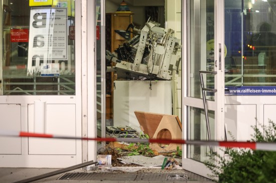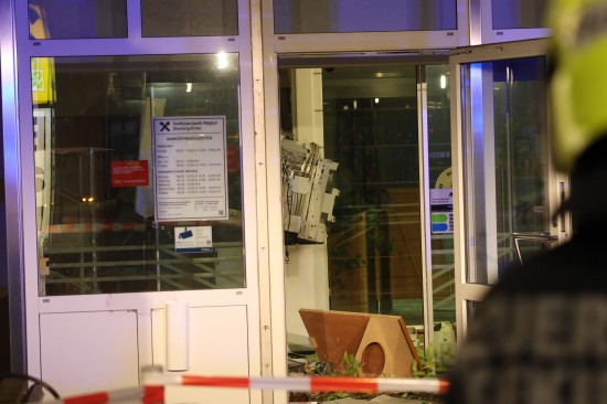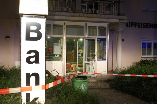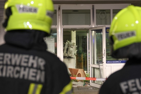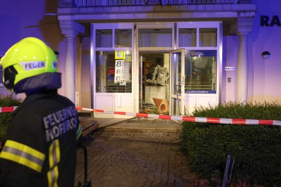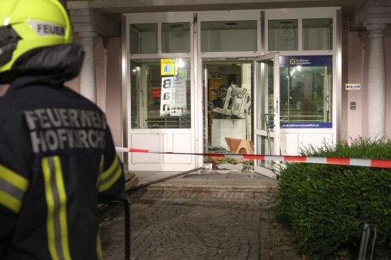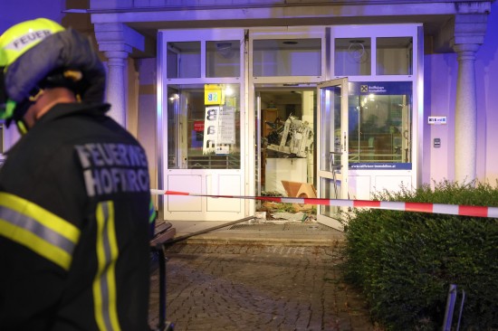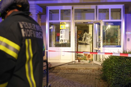 Die Feuerwehr wurde in der Nacht auf Dienstag zu einem Brand bei einem Bank- und Wohngebäude im Ortszentrum von Hofkirchen im Traunkreis alarmiert. Wie unschwer zu erkennen war, dürfte es dort zuvor zu einer heftigen Detonation in der Filiale gekommen sein. Ein Großaufgebot an Einsatzkräften der Polizei war ebenso vor Ort. Die Feuerwehr kontrollierte den betroffenen Bereich, größere Löschmaßnahmen mussten zum Glück nicht gesetzt werden. Die Polizei leitete zudem eine Fahndung ein.