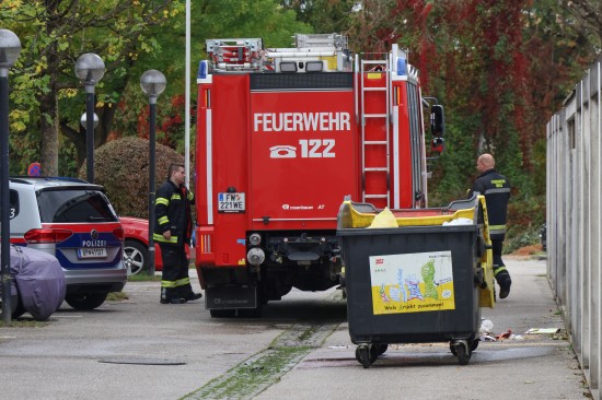 Ein beginnender Müllcontainerbrand in einem Müllraum einer Wohnanlage in Wels-Vogelweide löste Sonntagnachmittag kurzzeitig einen größeren Einsatz aus.