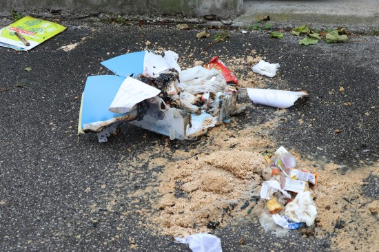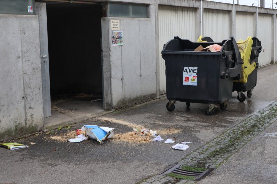 Beginnender Brand eines Müllcontainers im Müllraum einer Wohnanlage in Wels-Vogelweide
