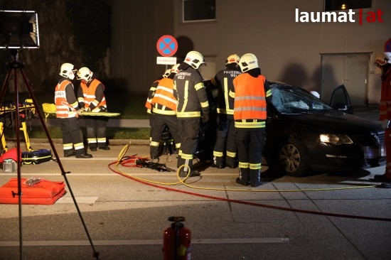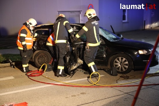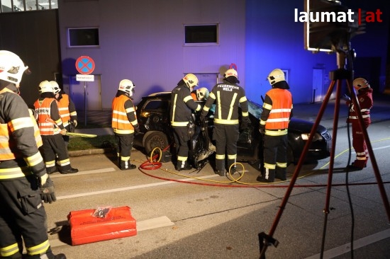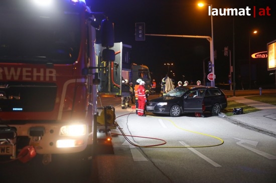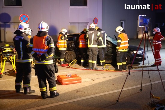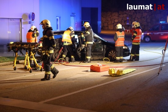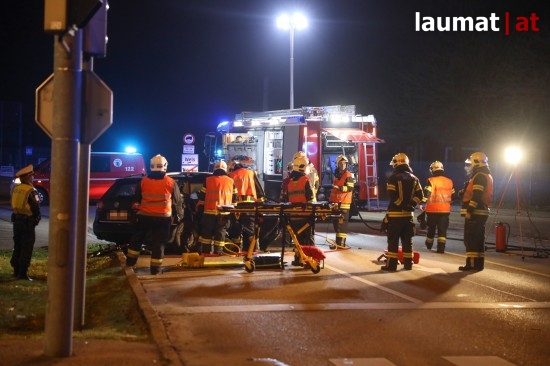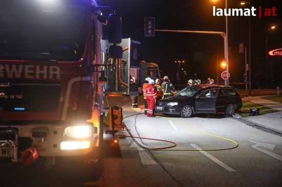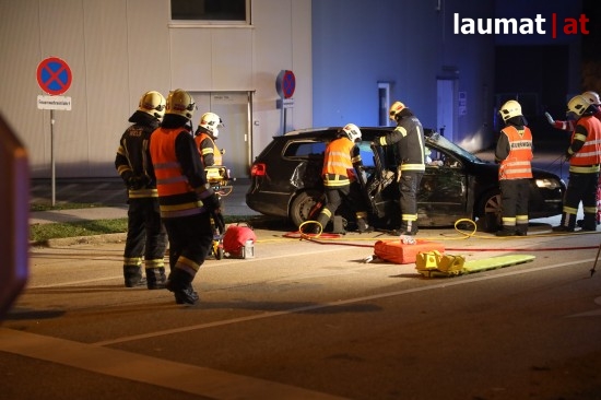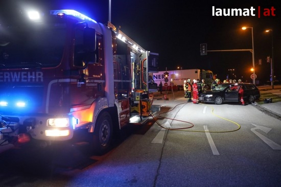 In Wels-Waidhausen musste am späten Mittwochabend ein Beifahrer nach einem Kreuzungscrash von der Feuerwehr aus dem Unfallfahrzeug befreit werden.