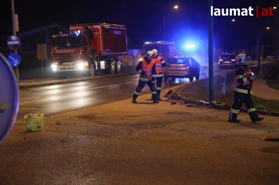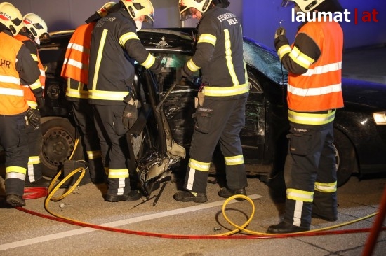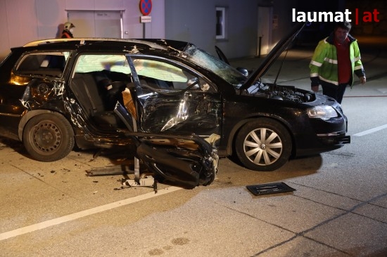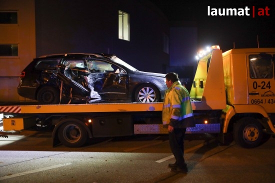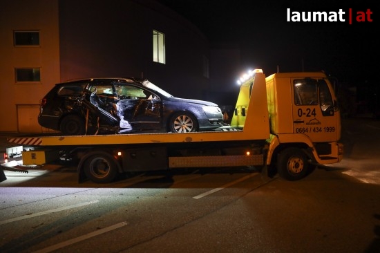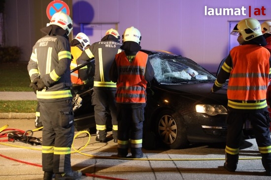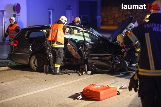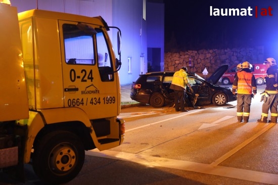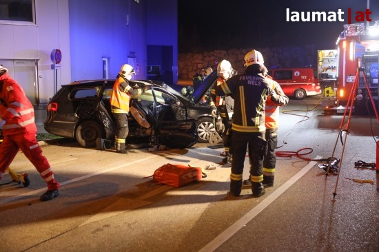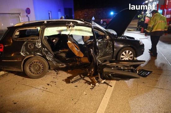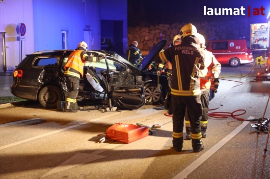 Wels. In Wels-Waidhausen musste am späten Mittwochabend ein Beifahrer nach einem Kreuzungscrash von der Feuerwehr aus dem Unfallfahrzeug befreit werden.