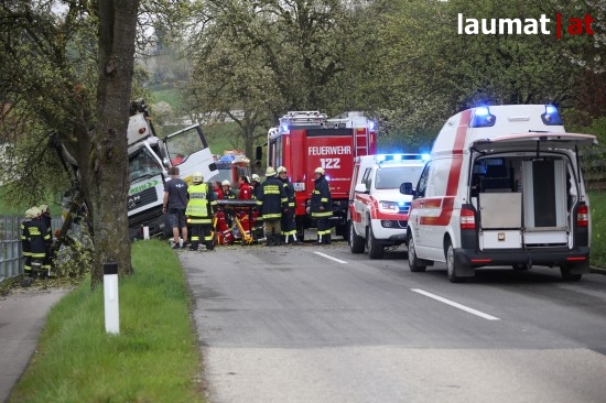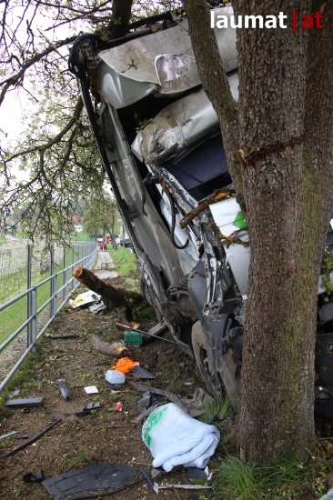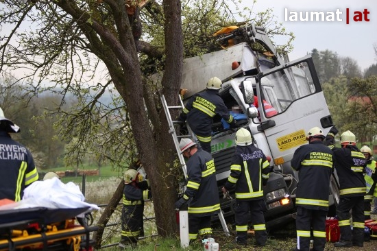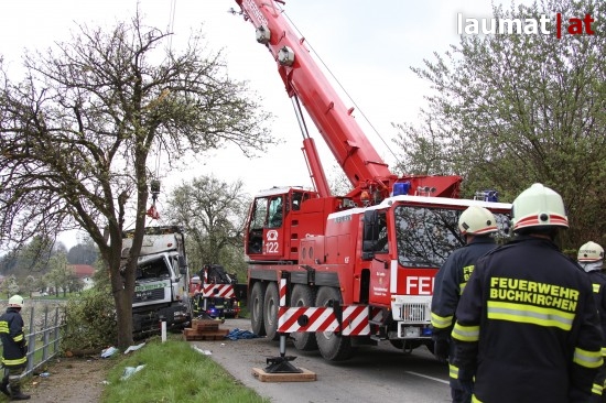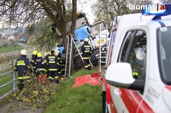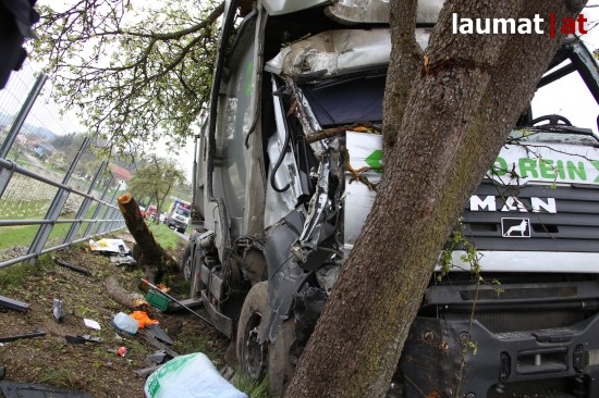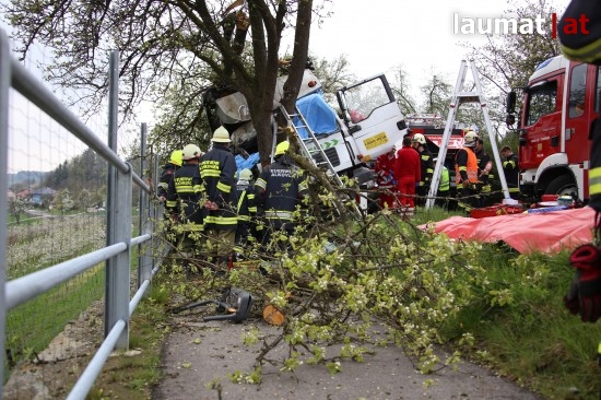 "Ein 32-jähriger Fahrzeuglenker war mit seinem LKW auf der Schartner Straße Richtung Buchkirchen unterwegs. Am Beifahrersitz saß seine 48-jährige Arbeitskollegin aus Sigharting. Der LKW-Lenker kam aus unbekannten Gründen mit den Rädern auf das weiche Bankett und konnte den LKW nicht mehr auf den Asphalt zurücklenken. Nachdem er nicht mehr auf die Straße zurücklenken konnte prallte er mit seinem LKW gegen zwei Apfelbäume. Die Beifahrerin wurde im Führerhaus eingeklemmt," berichtet die Polizei.