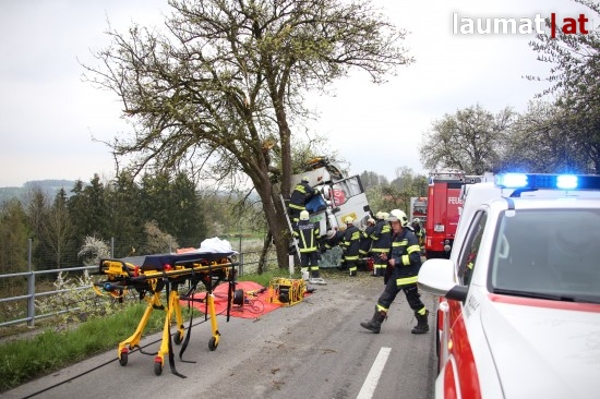 Ein schwerer LKW-Unfall ereignete sich Donnerstagvormittag auf der Schartener Straße in Scharten (Bezirk Eferding).