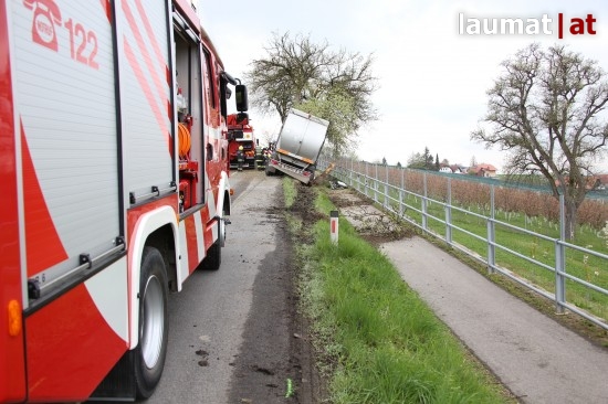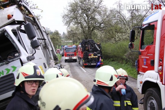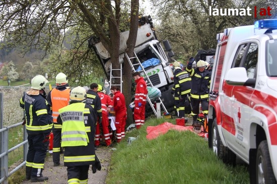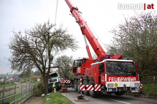 Scharten. Ein schwerer LKW-Unfall ereignete sich Donnerstagvormittag auf der Schartener Straße in Scharten (Bezirk Eferding).
