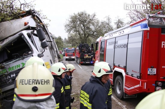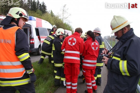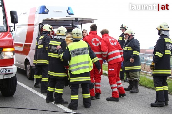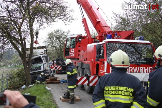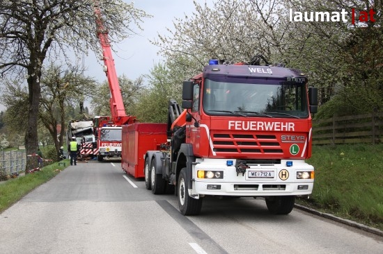 Die Beifahrerin erlitt Verletzungen unbestimmten Grades. Sie wurde nach der notärztlichen Versorgung an der Unfallstelle mit dem Rettungsdienst ins Klinikum Wels eingeliefert. Der LKW wurde mit dem Kranfahrzeug der Feuerwehr schließlich wieder auf die Straße gehoben und einem LKW-Abschleppunternehmen übergegben.