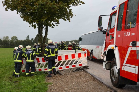Bergung eines Autobusses: Schienenersatzverkehr in Lengau von Straße abgekommen