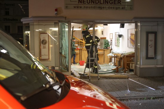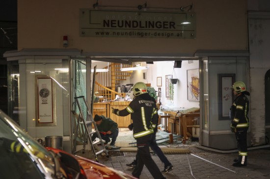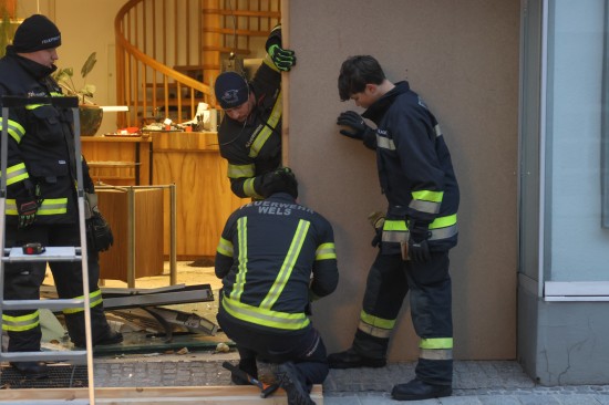 Wels. Ein Blitzeinbruch wurde in der Nacht auf Mittwoch auf eine Geschäftsfiliale eines Goldschmiedes in Wels-Innenstadt verübt. Die Einbrecher fuhren offenbar mit einem Fahrzeug direkt ins Geschäft.