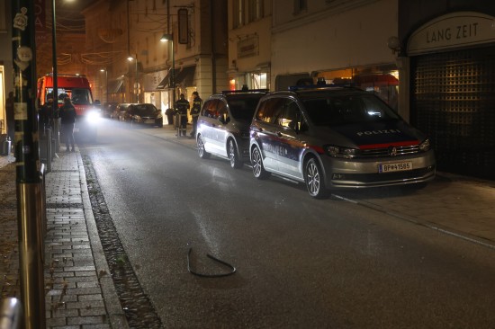 Gegen 04:00 Uhr Früh war laut Innenstadt-Bewohnern offenbar ein lauter Krach zu hören. Wie sich dann herausstellte, war ein sogenannter Blitzeinbruch bei einem Goldschmied die Ursache für den nächtlichen Lärm. Mit einem Auto dürften bislang unbekannte Täter offensichtlich den Eingangsbereich des Geschäfts gerammt haben, ausgestellte Schmuckstücke gestohlen und dann die Flucht ergriffen haben. Die Pfarrgasse war mit Splittern und Teilen des Eingangsbereiches übersäht. Die Polizei führte die Spurensicherung am Tatort durch. Die Feuerwehr wurde dann zum Sichern und provisorischen Verschalen des Eingangsbereiches alarmiert. Während mittels Kehrmaschine und Mitarbeitern der Straßenreinigung die Pfarrgasse gesäubert wurde, begannen Einsatzkräfte der Feuerwehr mit dem Verschließen des Geschäftslokals.