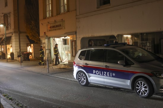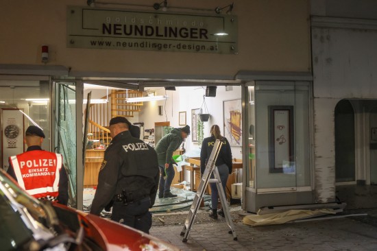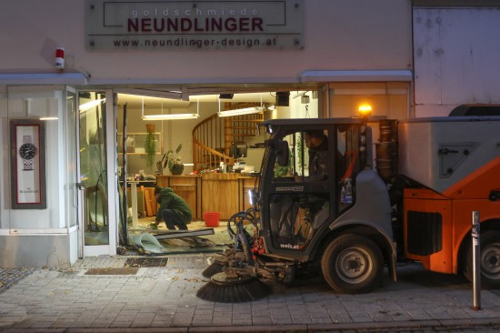 Ein Blitzeinbruch wurde in der Nacht auf Mittwoch auf eine Geschäftsfiliale eines Goldschmiedes in Wels-Innenstadt verübt. Die Einbrecher fuhren offenbar mit einem Fahrzeug direkt ins Geschäft.