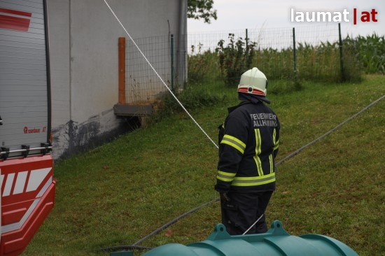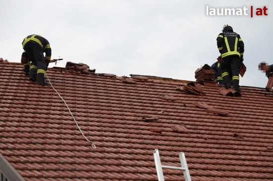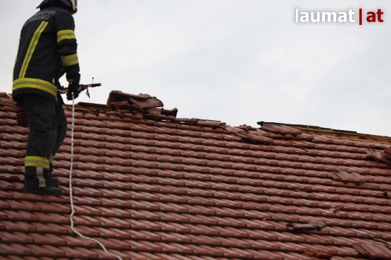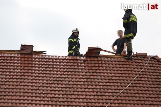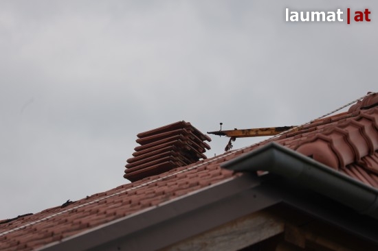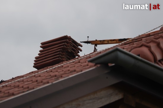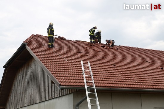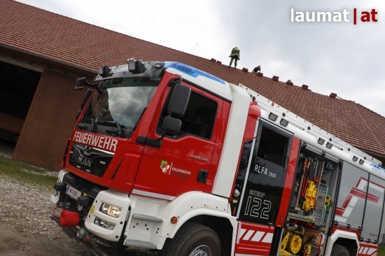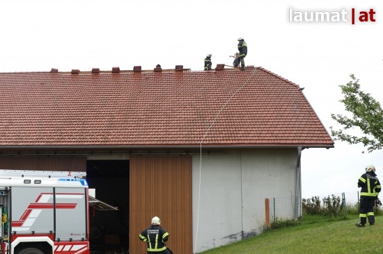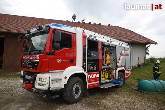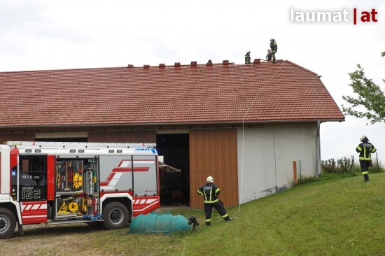 Blitzschlag löste Brand im Dachfirst eines landwirtschaftlichen Gebäudes in Allhaming aus