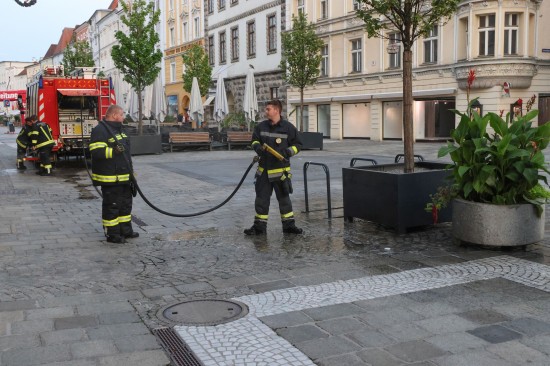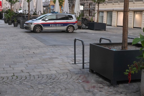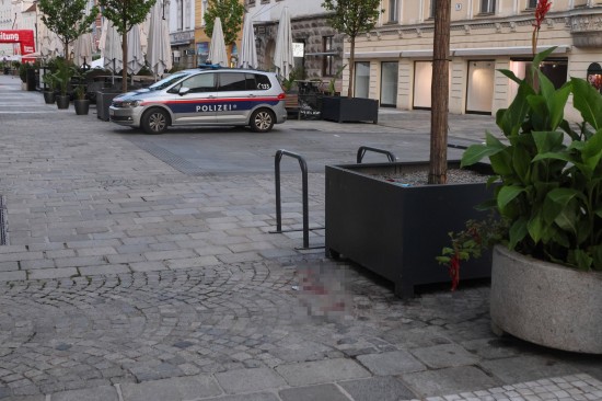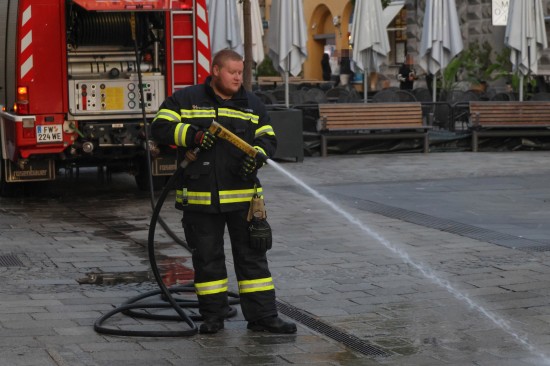Blutspur am Stadtplatz in Wels-Innenstadt sorgte für Einsatz der Feuerwehr