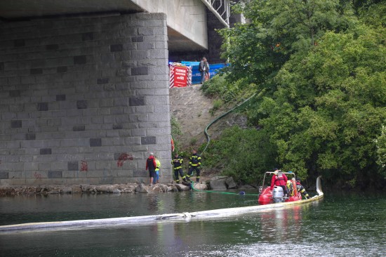 Ein Öleinsatz auf der Traun bei Marchtrenk (Bezirk Wels-Land) beschäftigte am Donnerstag mehrere Stunden lang die Einsatzkräfte.
