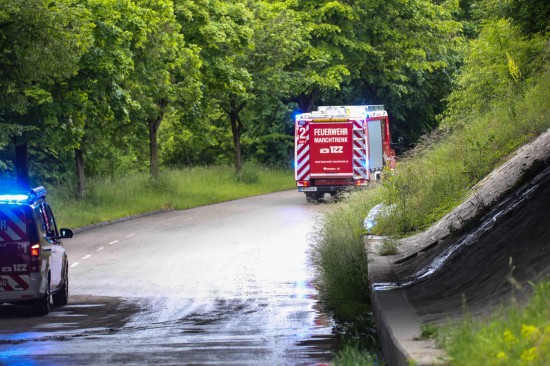 Offenbar am Vormittag wurde die Feuerwehr zu einem Ölaustritt auf die Traun alarmiert, der schon seit längerem die Einsatzkräfte beschäftigte. Der Einsatzort befindet sich auf Höhe einer Baustelle unter der Brücke der A25 Welser Autobahn. Mittels Feuerwehrboot und einem Saugwagen an Land wurde das auf der Traun innerhalb der Löschlingen treibende Betriebsmittel zuerst aufgefangen und dann abgesaugt.
