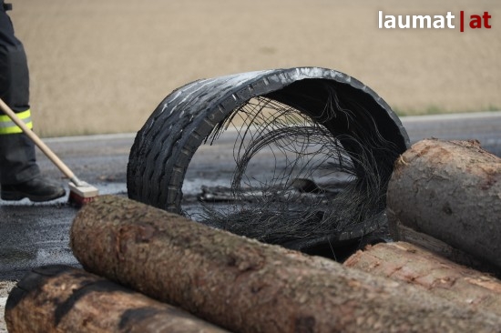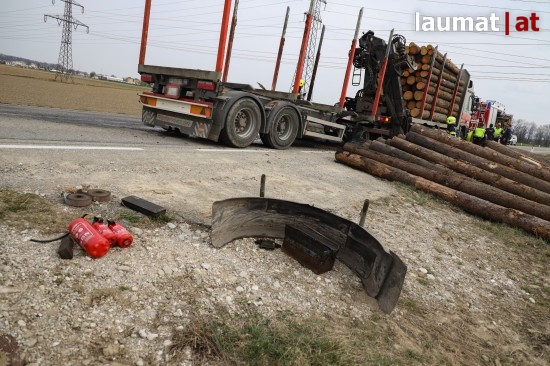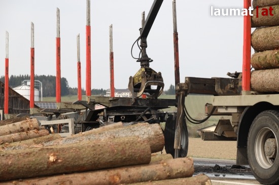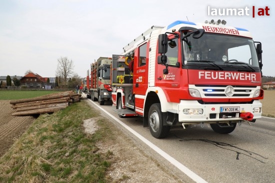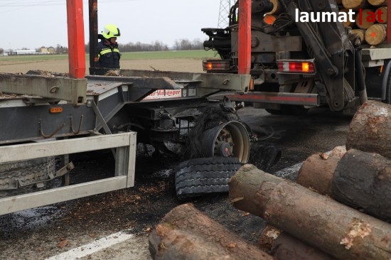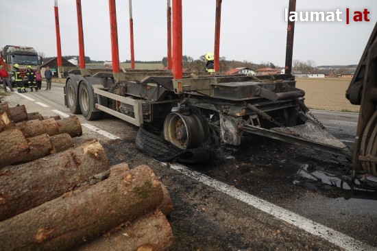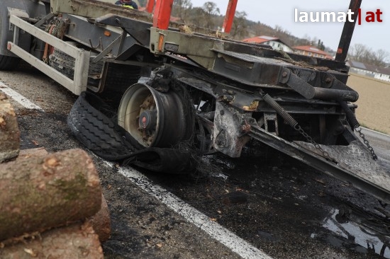 Brand bei Anhänger eines Holztransporters in Neukirchen bei Lambach