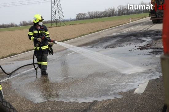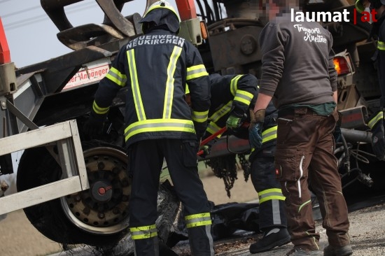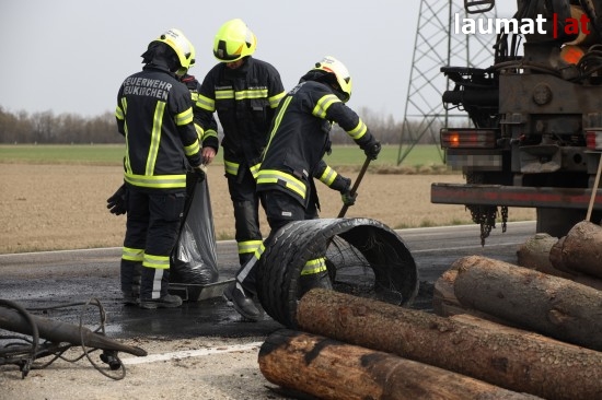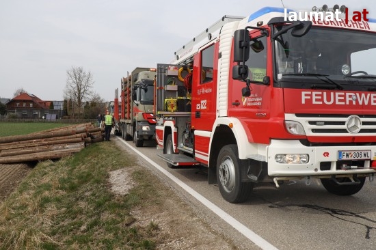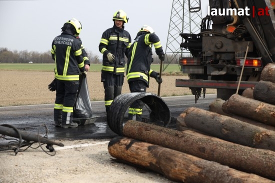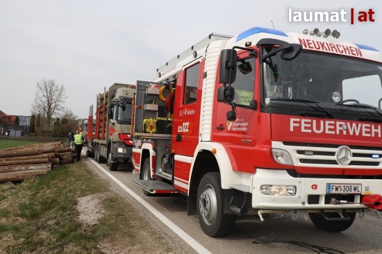 Ein Brand eines Anhängers eines Holztransporters führte Dienstagnachmittag zu einem Einsatz zweier Feuerwehren in Neukirchen bei Lambach (Bezirk Wels-Land).