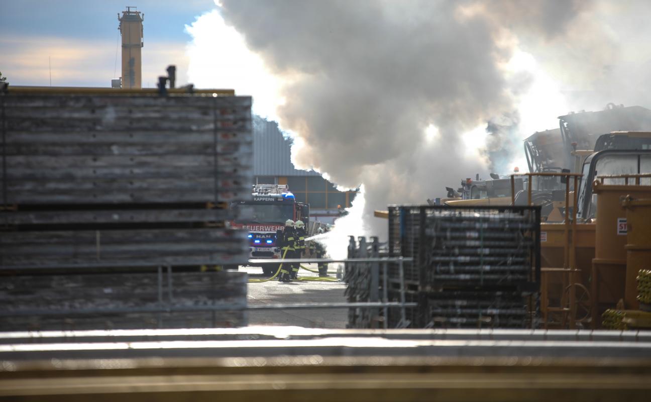 Vor Ort stellte sich dann heraus, dass eine am Firmengelände abgestellte Baumaschine aus bisher unbekannter Ursache in Brand geraten ist. Die Einsatzkräfte der zwei alarmierten Feuerwehren konnten das Feuer rasch ablöschen. Verletzt wurde niemand.