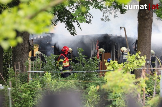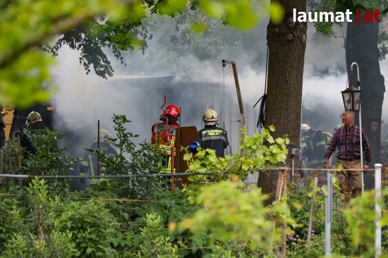 Wels. Die Feuerwehr stand am späten Samstagvormittag in Wels-Schafwiesen bei einem Brand einer Doppelgartenhütte im Einsatz.
