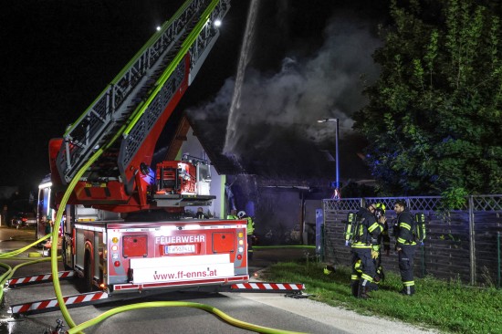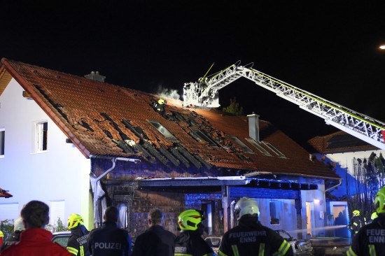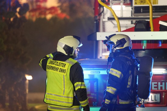 In Enns (Bezirk Linz-Land) ist es in der Nacht auf Donnerstag zu einem größeren Brand bei einem Doppelhaus gekommen. Drei Feuerwehren standen im Einsatz.