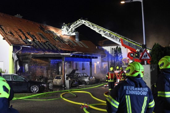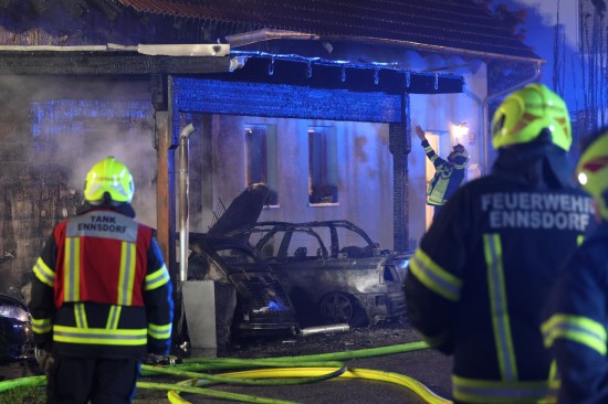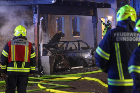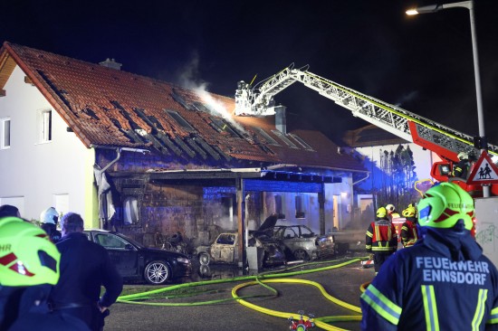 Brand einer Doppelhaushälfte in Enns nach anfänglichem Fahrzeugbrand in einem Carport