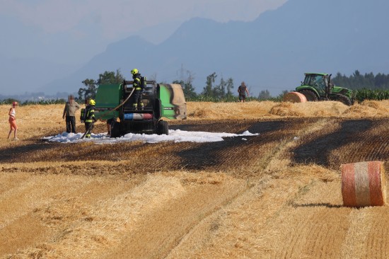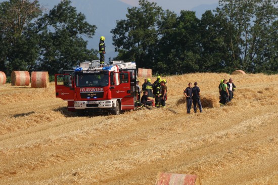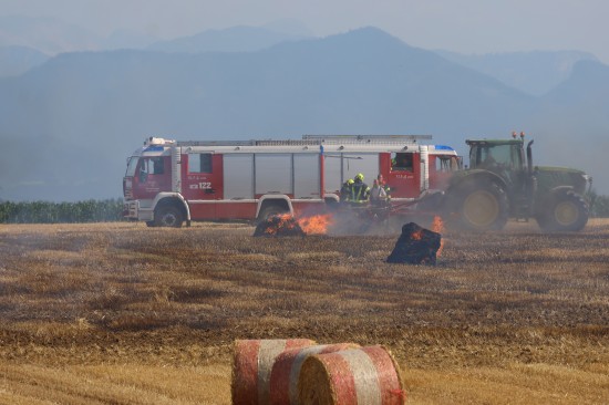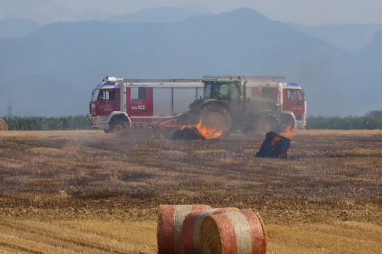 In Steinhaus (Bezirk Wels-Land) standen Einsatzkräfte dreier Feuerwehren am Mittwochnachmittag bei einem Brand einer Rundballenpresse sowie einem Stoppelfeld im Einsatz.