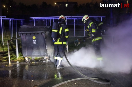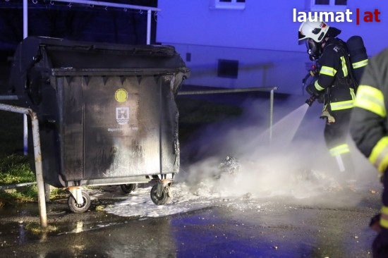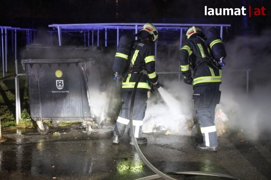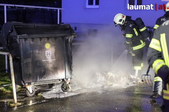 Brand eines Abfallcontainers vor einem Mehrparteienwohnhaus in Wels-Neustadt