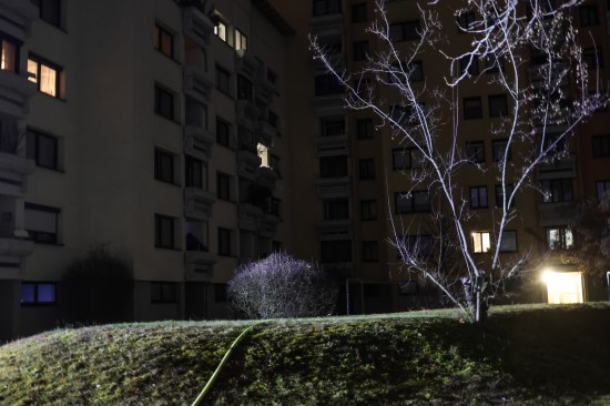 Die Feuerwehr wurde in der Nacht auf Samstag zu einem Balkonbrand bei einem Mehrparteienwohnhaus im Welser Stadtteil Lichtenegg gerufen.