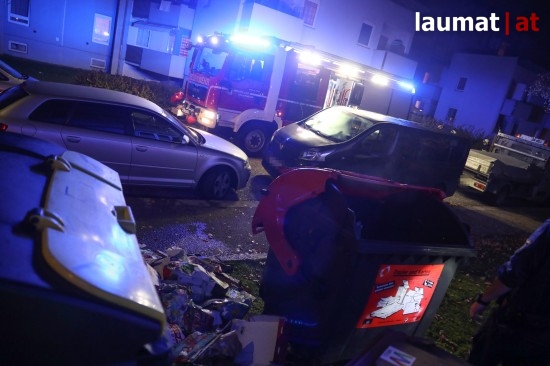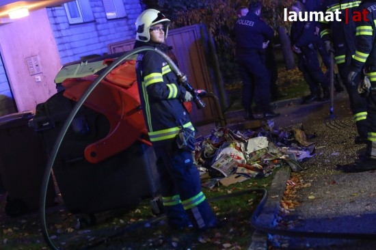 Die Feuerwehr musste am späten Sonntagabend zu einem Brand eines Papiercontainers vor einem Mehrparteienwohnhaus in Wels-Lichtenegg ausrücken.