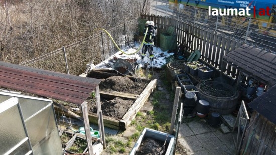 Die Feuerwehr stand Dienstagnachmittag bei einem Komposthaufenbrand in einem Kleingarten in Wels-Neustadt im Einsatz.