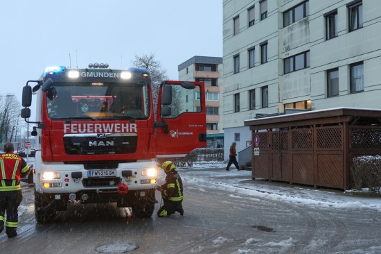 Gmunden. In Gmunden standen die Einsatzkräfte Sonntagnachmittag bei einem Kleinbrand in einer Wohnung in einem Mehrparteienwohnhaus im Einsatz.