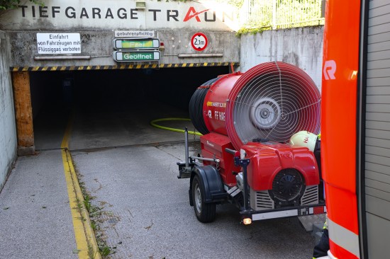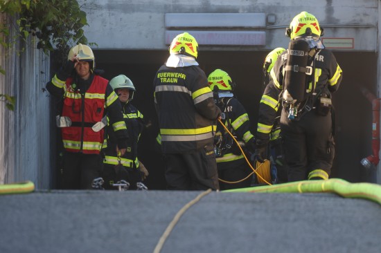 Ein PKW-Brand in einer Tiefgarage in Traun (Bezirk Linz-Land) hat am späten Montagnachmittag einen stundenlangen Einsatz dreier Feuerwehren, der Rettung und der Polizei nach sich gezogen.