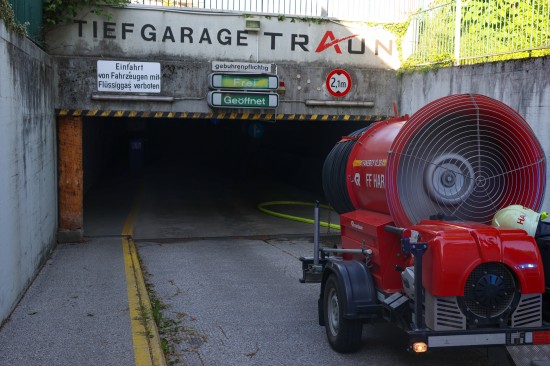 Die Einsatzkräfte der Feuerwehr wurden ursprünglich zu einem Brandmeldealarm in einer Tiefgarage in Traun alarmiert. Beim Eintreffen der ersten Kräfte beziehungsweise zwischenzeitlich stellte sich dann bereits heraus, dass in der Tiefgarage offensichtlich ein Fahrzeug in Vollbrand stand. Der Brand beschränkte sich zwar auf ein einzelnes Auto, dennoch war die Rauchentwicklung und Verrauchung enorm. Die Einsatzkräfte mussten zahlreiche Lüfter einsetzen, auch ein Großraumlüfter wurde angefordert. Das Feuer konnte binnen weniger Minuten gelöscht werden, dennoch entstand in der Tiefgarage ein erheblicher Schaden durch die enorme Rauchentwicklung. Der Schlosspark wurde aufgrund der Verrauchung ebenso geräumt. Nach einer längeren Belüftungsphase konnte die Polizei mit ersten Erhebungen beginnen. In der Tiefgarage parkende Autos konnten von den Fahrzeugbesitzern nach und nach hinausgefahren werden. Die Fahrzeuge wurden zumindest erheblich verschmutzt durch die Rauchentwicklung. Die Tiefgarage wurde behördlich gesperrt. Im Laufe des Dienstags sollen weitere Brandermittlungen und Schadensbegutachtungen durchgeführt werden.