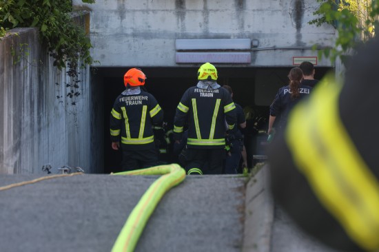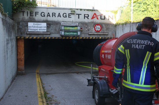 Brand eines PKW in einer Tiefgarage in Traun sorgt für größeren Einsatz dreier Feuerwehren