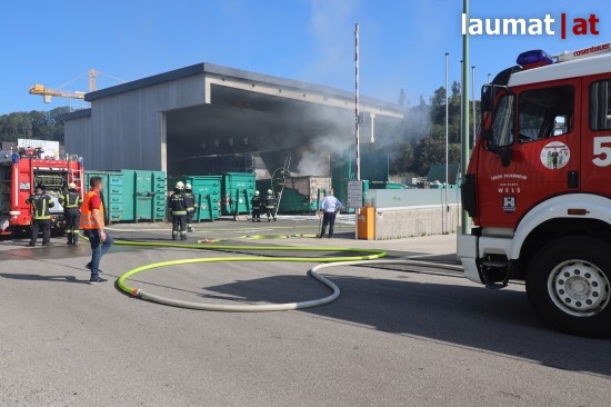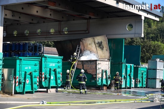 Brand eines Problemstoffcontainers bei Abfallverwertungsunternehmen in Wels-Pernau