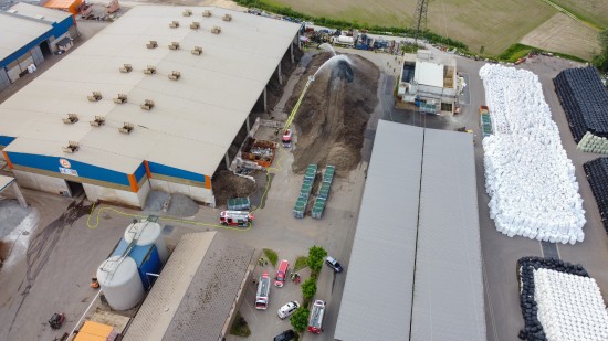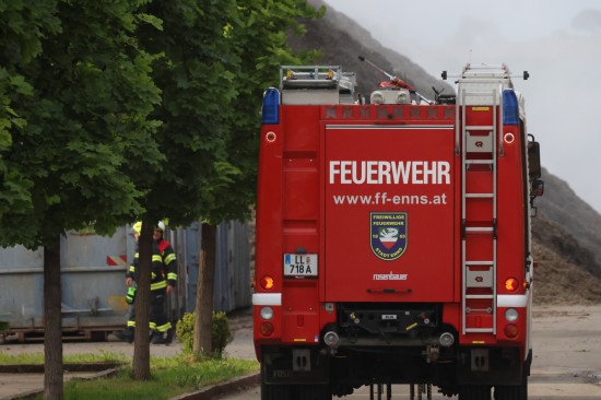 Brand im Außenbereich eines Entsorgungsunternehmens in Enns sorgte für Einsatz zweier Feuerwehren