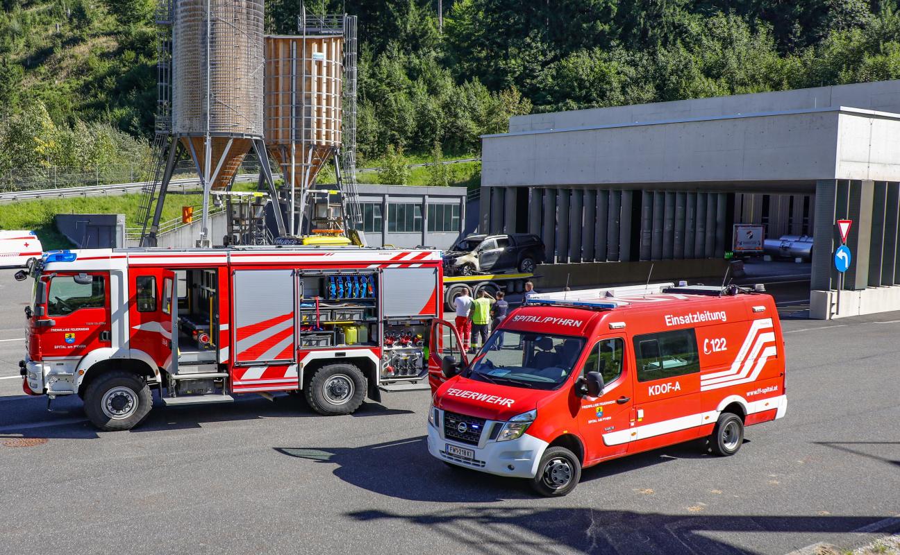 Die Einsatzkräfte wurden am Samstag kurz vor Mittag mit dem Einsatzbegriff "Brand Tunnel - Alarmstufe 2" auf die A9 Pyhrnautobahn bei Spital am Pyhrn alarmiert. Im Bosrucktunnel in Fahrtrichtung Knoten Voralpenkreuz brach offenbar bereits im Gemeindegebiet von Spital am Pyhrn ein Brand im Bereich des Motorraumes aus. Der Brand konnte rasch eingedämmt werden, zwei Personen mussten vom Rettungsdienst versorgt werden. Die in einem Pferdeanhänger mitgeführten Tiere blieben offenbar unverletzt. Fünf Feuerwehren - drei aus der Steiermark und zwei aus Oberösterreich - standen im Einsatz.