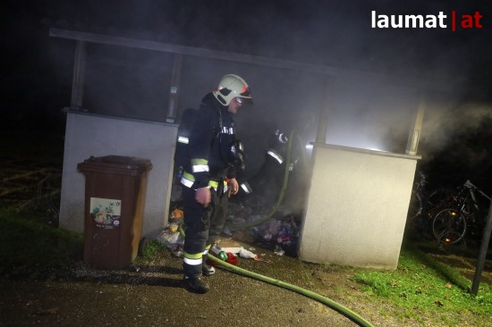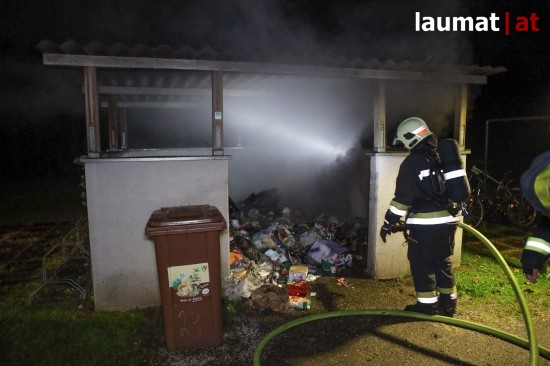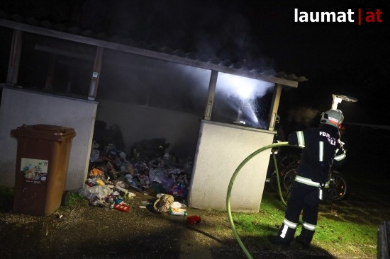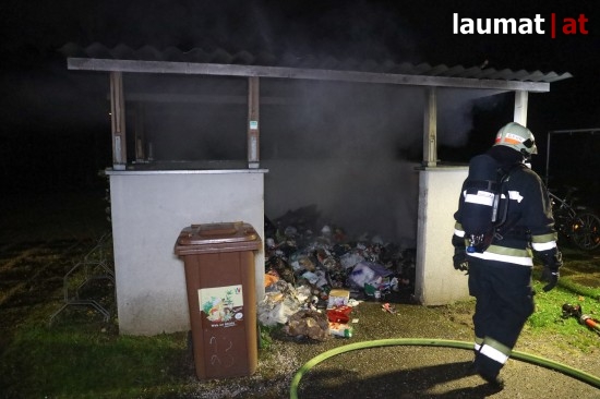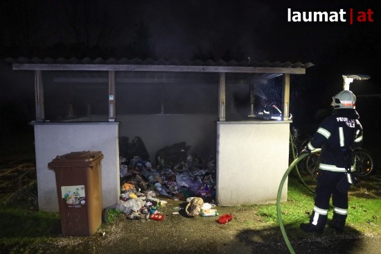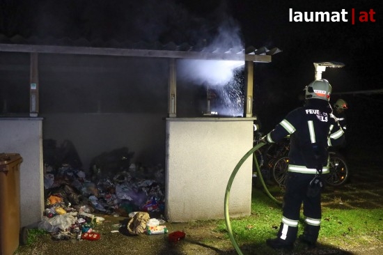 Wels. Ein Brand von Müllcontainern in der Müllsammelstelle einer Wohnanlage beschäftigte Montagfrüh die Einsatzkräfte der Feuerwehr in Wels-Lichtenegg.