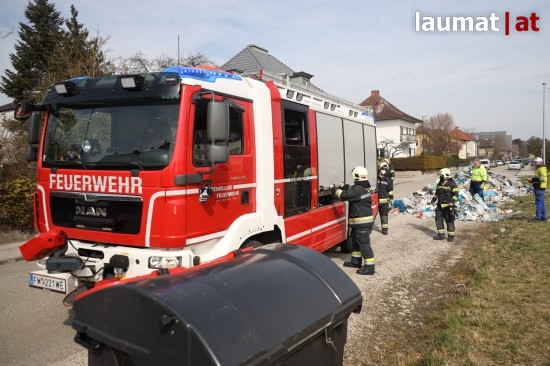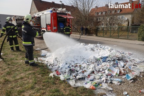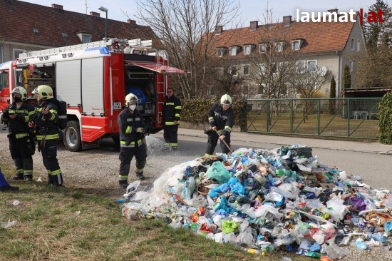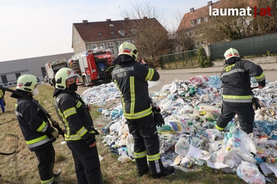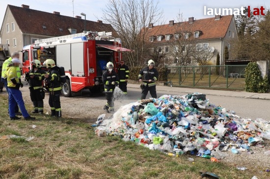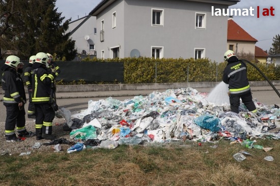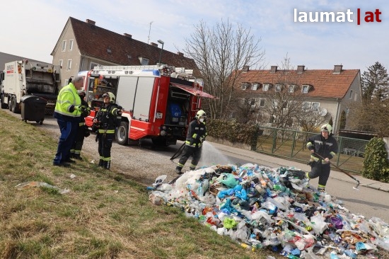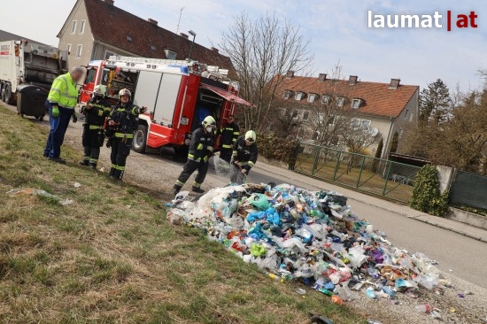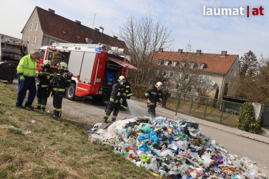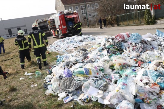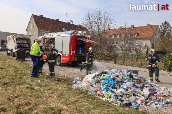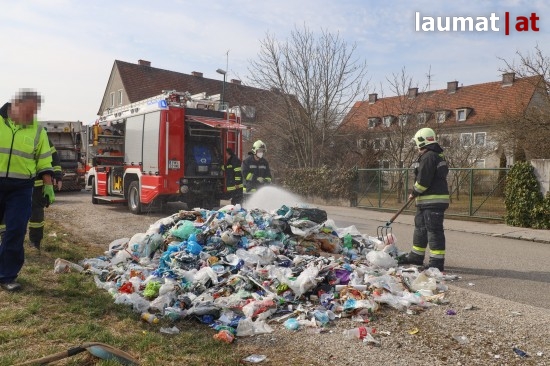 In Wels-Neustadt hat Freitagnachmittag der Inhalt eines Entsorgungsfahrzeuges - Kunststoffabfall - zu brennen begonnen. Die Mitarbeiter bemerkten den Brand und luden den Inhalt rechtzeitig ab.